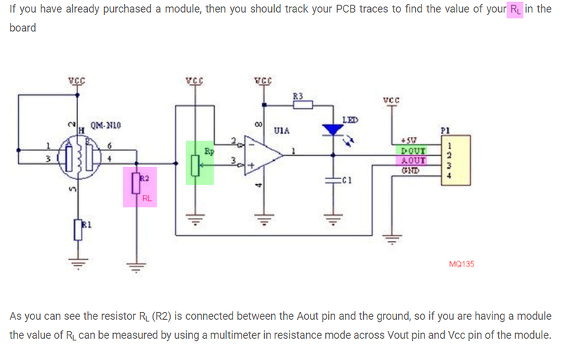 RO of the resistor could be derived from RS. The main job of the calibration is to calculate the RO by sampling and averaging the readings when the module is placed in the clean air.